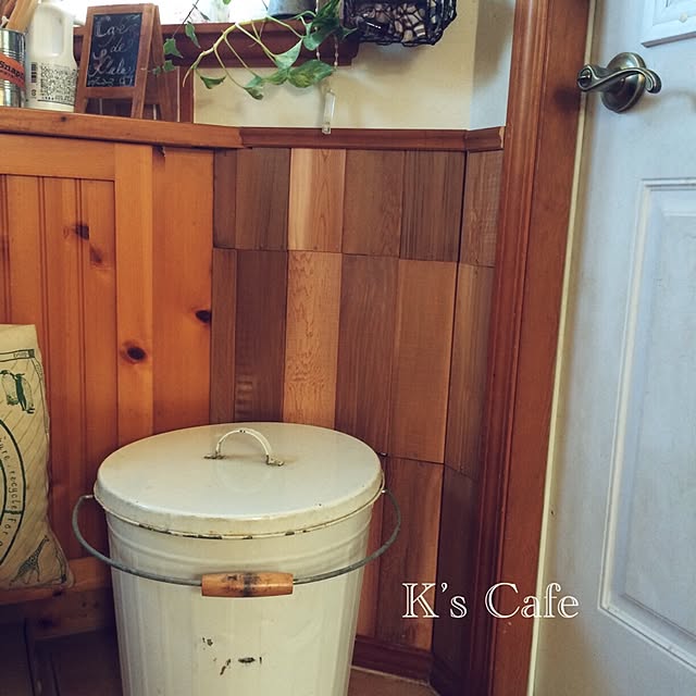 akkiiiちゃんの編み編みアイスクリームは、リメ缶に入れたままこちらの棚に飾りました♡(*´艸`)