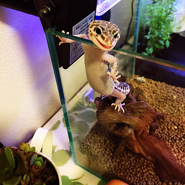 のれんで仕切った和室にはレオパとベタちゃん。