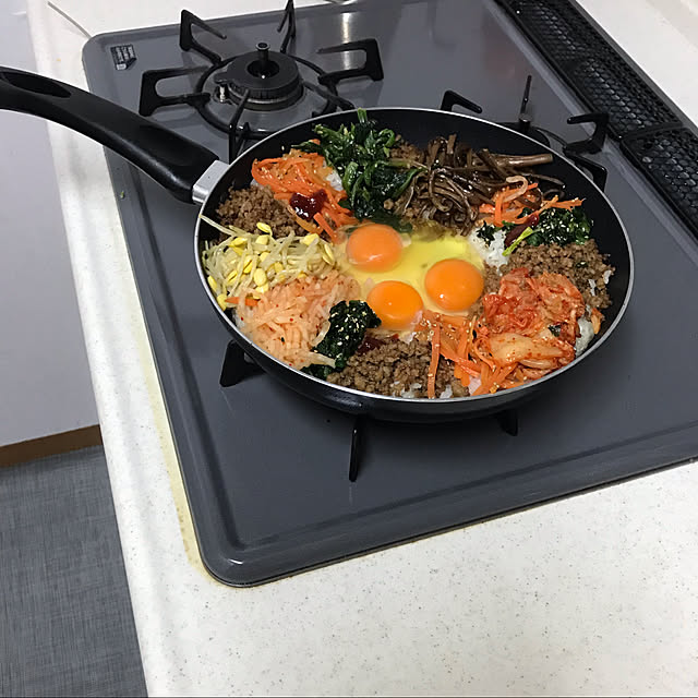 事前に準備していた、ビビンバになる具材を炊いた鉄鍋の上にのせておくんですが…ちょっと更にお焦げを作りたかったので( ˙▿˙ )☝ここで美味しくなるポイント😋😋