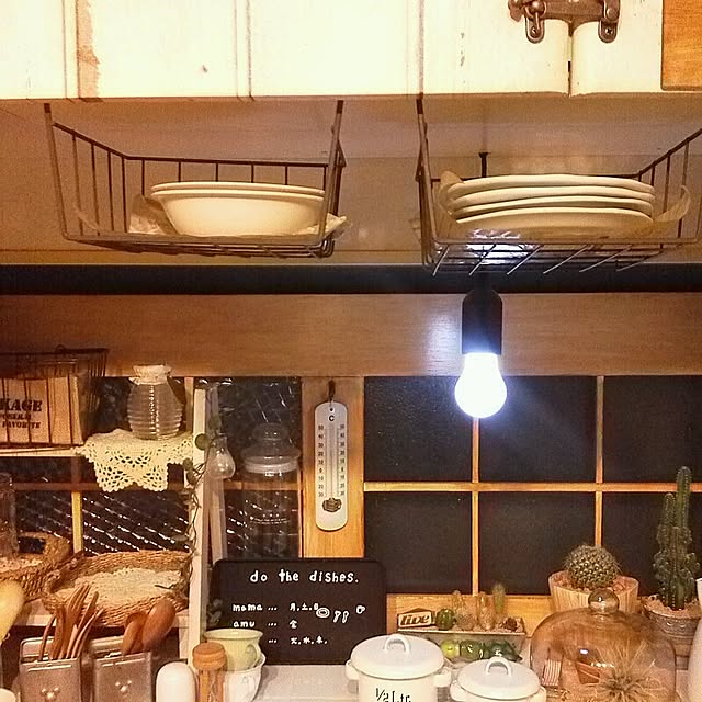 奥のライトは、ダイソーのプラスチック製コットン入れです。ターボライターで底を熱し穴を拡張し、電池式の電球を入れました。