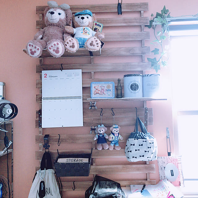 すのこリメイクして、旦那さんの荷物置き場作りました(*゚▽゚*) カレンダーは貰い物だから明日買ってこよっと 笑