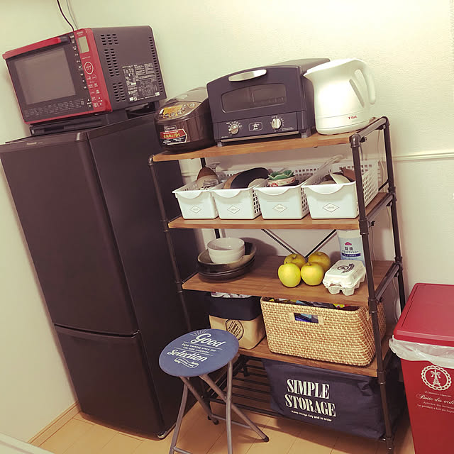 まだまだ完成しないキッチンスペース。 改めて見ると色々出てくるもっとこうしたい、、。 あ、炊飯器の上の食器は普段布かけてる。 あとお盆とワンプレート用の平皿立てる食器立てが良いの見つけられない、、、 お皿がすごい斜めなる。 WiFi基地もとりあえず納めてから早何年笑 しかし、以前の投稿見返すと随分かわったなぁ。 とりあえず、食器やお盆やコーヒー用品置きたくて買った棚のサイズをミスってルンバが収納出来ないのは大問題。 上の皿が落ちてきたら大事なルンバちゃんが潰れる。ひぇ。 ルンバステーション移動するか、、? それとも棚を買いかえるか、、?