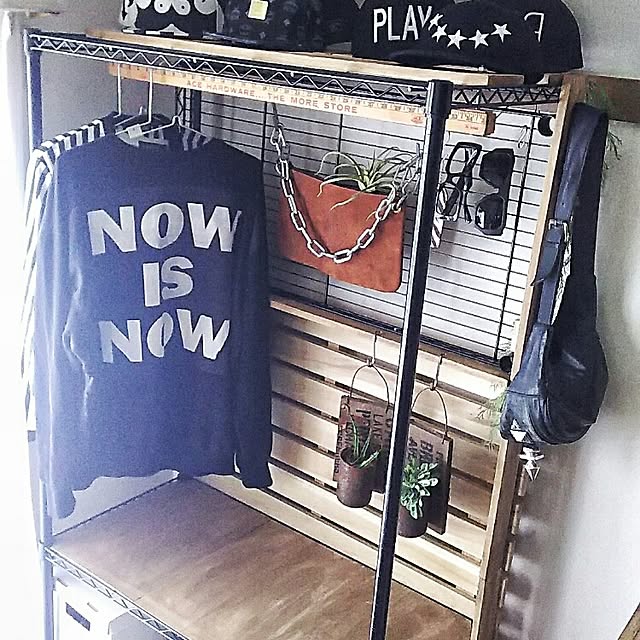 板壁風にしてみた。 と言いつつ このスチールラックに合うよう 新たな壁紙を注文中‼‼^^ 和室収納部屋リノベ進行中↗^^