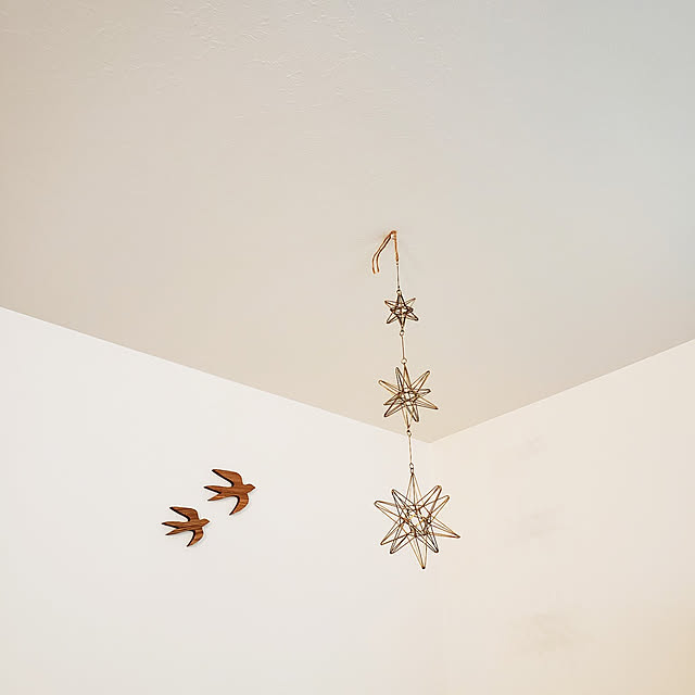 無印良品の 『針が細い画鋲📌』 を使って、つばめオーナメントを設置☘️ (針が細い画鋲の設置picはこちら↓) https://roomclip.jp/photo/sPR3?utm_campaign=app_sns_share&utm_medium=social 立体的に取りつけることができました(*´∇`) わかりにくいけど、つばめさんのシルエットが壁に映って、ずっと眺めていたい💕 リビング用に注文したつばめオーナメントも来週には届きそうです。 サクラ材でオーダーしてみたけど、どんな感じかな?3サイズで届きます。 ワクワク((o(^∇^)o))