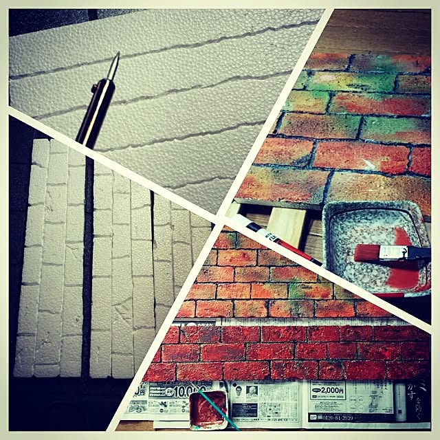 ④上から漆喰を塗って、アンティークメディウムで汚し加工をして完成!