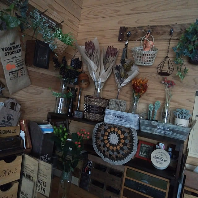ほおずきと、紫、黄色、オレンジ、赤がまざったとうがらし…名前が『カメレオントウガラシ』と言うらしいんですがお初の名前🤭色とりどりのプチプチが可愛いくてお花屋さんで買ってアレンジしました💐