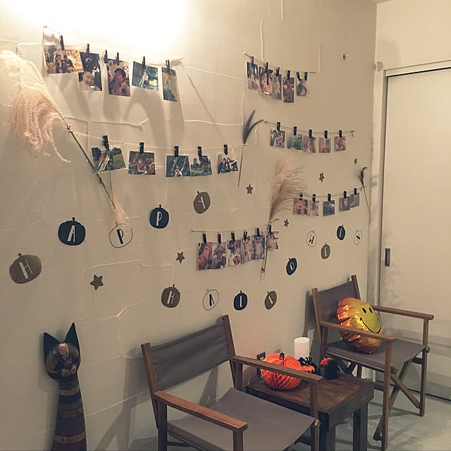 ハロウィンの前にお月見~ 今年は9月24日が 中秋の名月(十五夜) 去年と同じですが今年もタペストリー 今年は100均からタペストリーの棒をお迎えして使ってみました。 色を塗ろうかなあって思ったけど……そのままで~♡