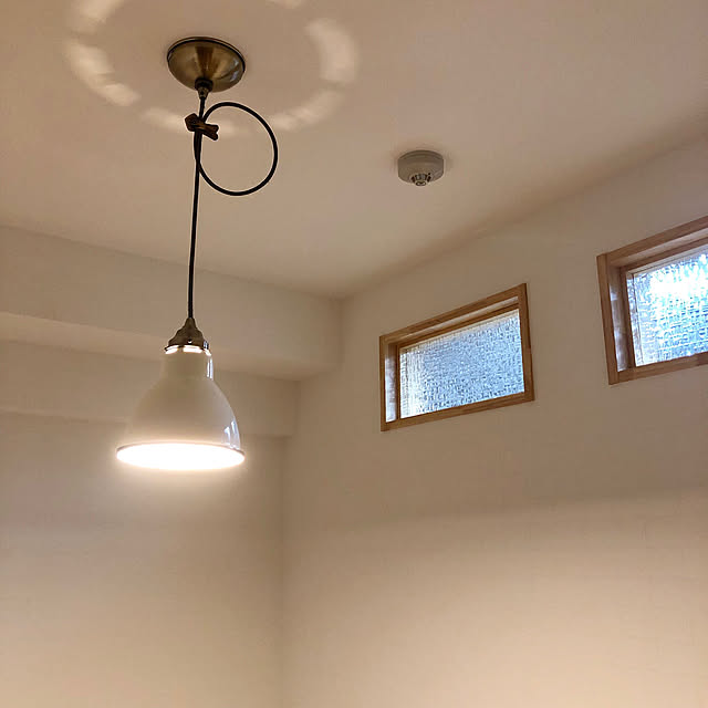 シェードを拭いてたら、そういえば緑色だったと思い出しました。ペンダントを選んでる時はタイルの緑色とコーディネートして深緑にこだわって決めたのに、いいかげんなもんですねf^_^; 光の加減で黒に見えがちだし。 内側が白くないのが決め手でした。