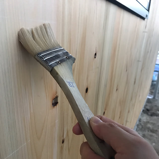 一度塗り完了(,,> <,,)♡ 昔の砂壁でもない フワフワの壁は 塗るのが難しいです( ̄∀ ̄;)