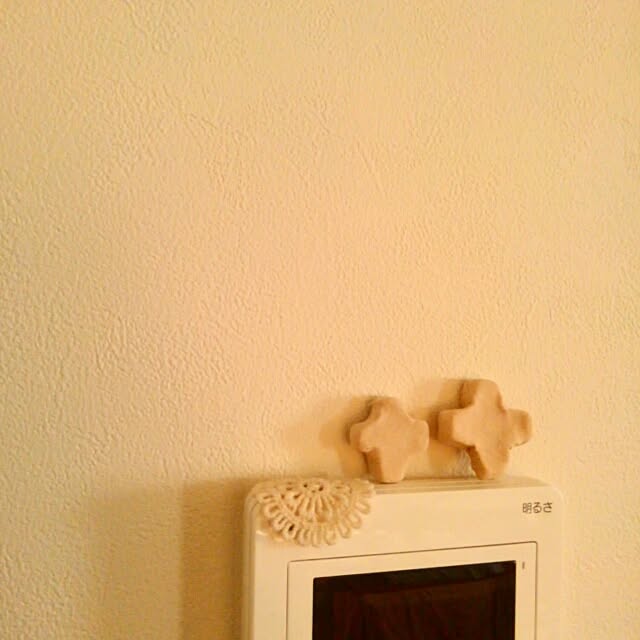 ドアホン上には100均棚を。 ハロウィンとがちゃがちゃのライオンさんでかざりつけです!