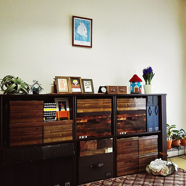 この古い本棚を縦から横にしてリメイクしてから、このコーナーが凄く居心地良くなりました。