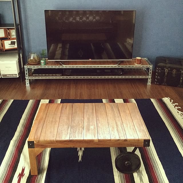 旦那さんDIY 完成品!! 全部木材なのにアイアン風 を目指して作ったそう。 写真だとアイアンに見える!! 裏とか塗装サボってるから木材!笑 うん!いい感じ〜😄