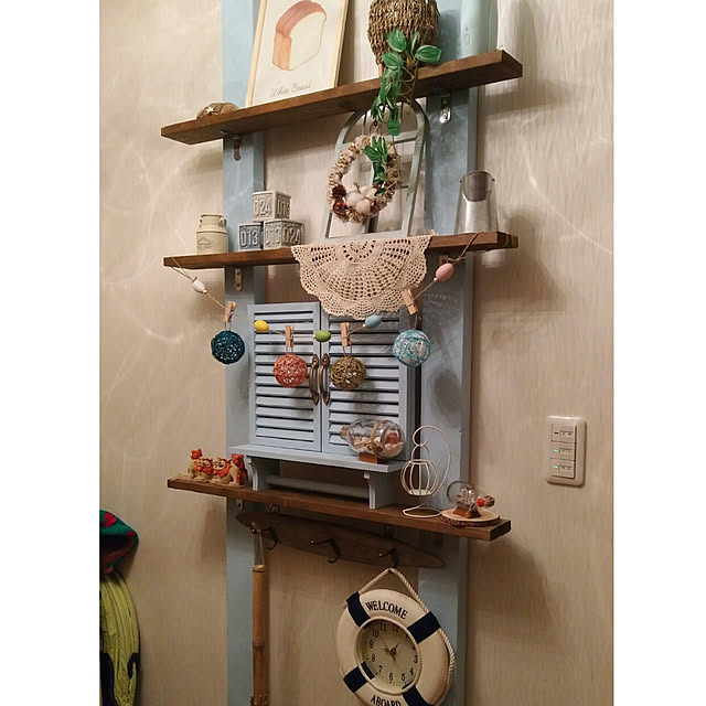 100円のガラスジャーがちょっと大きくて、棚に入らないので、横にして、ボトルシップ風にしてみました。 中にはセリアのミニチュア飾りました(*^▽^*) 埃避けになるので、GOODでした♪ヽ(´▽`)/ 楽天のRack Worldで アイリスオーヤマ メタルラックと リバーシブルウッドパーツ棚板 2016年10月購入 ウッドパーツ棚板で安定して小物が置けます。