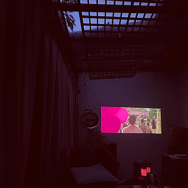 キッチンに出入りする私や旦那、息子たちから見えないように、キッチンとリビングの間にカーテンとパーテーションを即席設置〜( ^ω^)