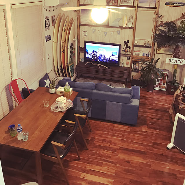穏やかな時間の流れを感じる、シックなコースタルリビング。