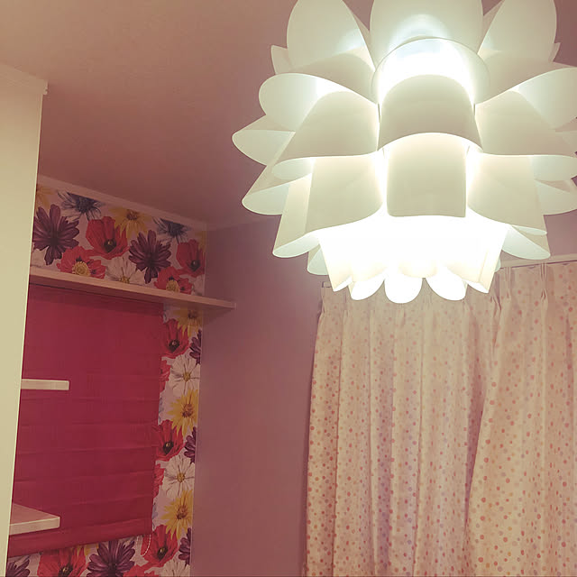 たまには天井照明を主役に(o^^o)♪ ここの照明探している時に、IKEAで見かけてリーズナブルでデザインも気に入り即買いしました♪ 少し女の子っぽいかもですが、サイズもちょうど良くとても気に入ってます(*≧▽≦)