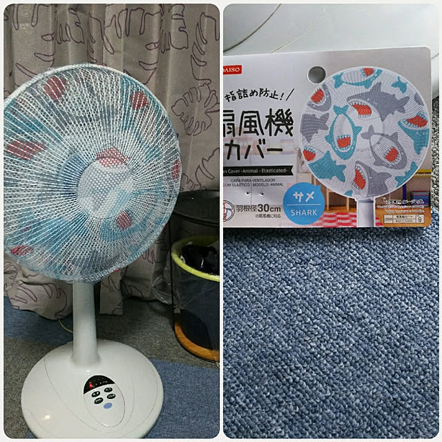 下に小さなやんちゃガールが我が家には居てるので、ダイソーの白の扇風機カバーを付けてます!