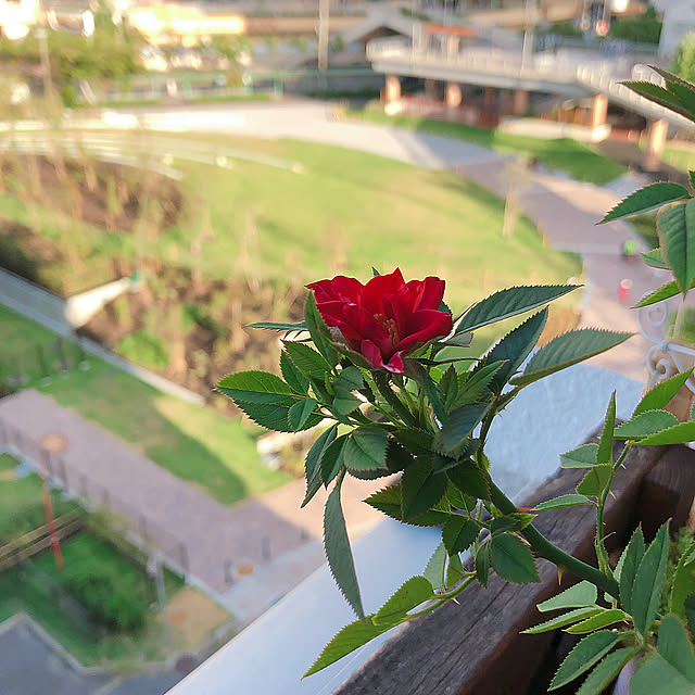 斑入りのはずが真っ赤で花弁も少なくお疲れモードのミニバラが咲きました🌹