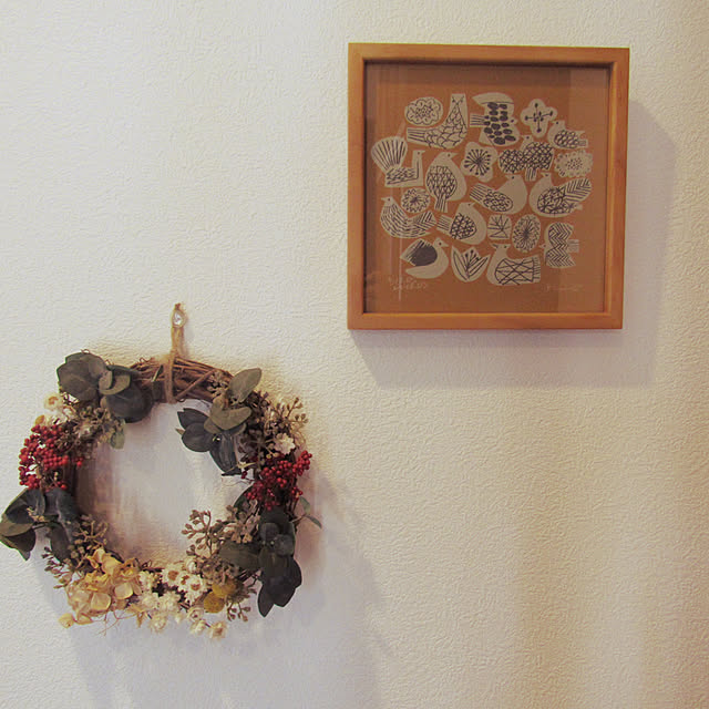 ツリーを出すのはもう少し先だけど、グリーンとリース型のシルクスクリーンでちょっぴりクリスマス気分☆