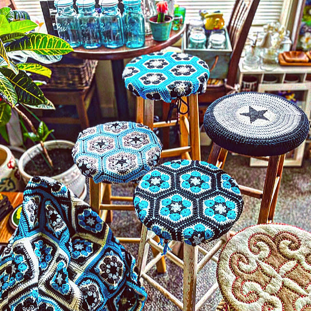 こちらに写っている編み物のアイテムは自分では編み物が苦手でできないので ハンドメイド作家さんの物を購入させていただいて 楽しんでいます(*☻-☻*) アフリカンモチーフのブランケットは2枚目になります(*゚∀゚*)可愛いくて好みなので思わず購入してしまいました♪ 編み物の作品はほっこり癒やしのアイテムなので 良いですね(*´꒳`*)