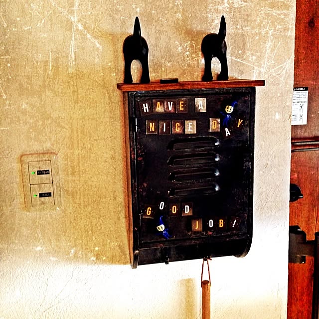 Key boxはDAISOの木箱を3つボンドでとめて、木箱の内下側に鍵転落防止の為に別場所で使った壁紙の筒芯を切ってボンドでとめてます。ゴミでも何でも使える物は使う!←度が過ぎるから以前はゴミ屋敷だった我が家(笑)