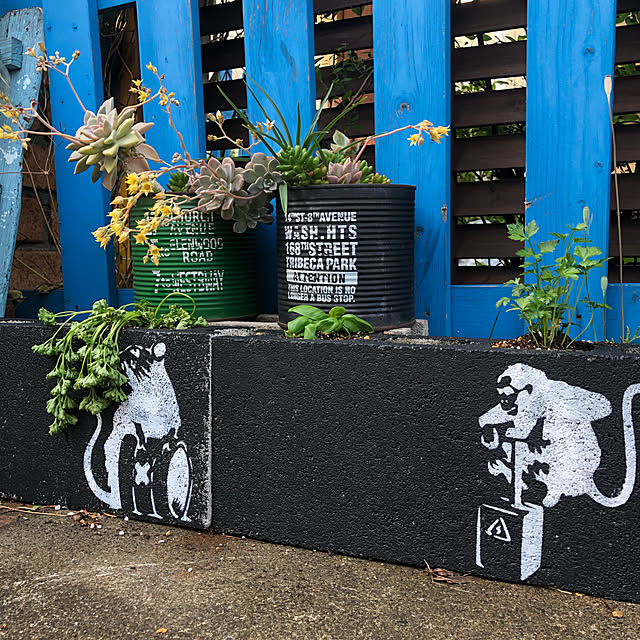 玄関の足踏み台、父に作ってもらったから、アイアンペイントでポンポンしてステンシルしたよ。