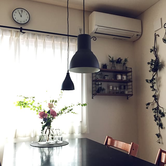 1年ほど前に手作りした天井(!)と照明と飾りです。私の趣味部屋なのですが、引っ越した当初は天井がなくて笑、廃材をもらいに行き、配線をして、天井板を張る作業をしました。市販のライトは値段が高くて悩み、これもDIYすることに。結果100均のすだれに、剪定された竹をもらってきて付けて、ヒトデ付けておしまい。安い…笑
