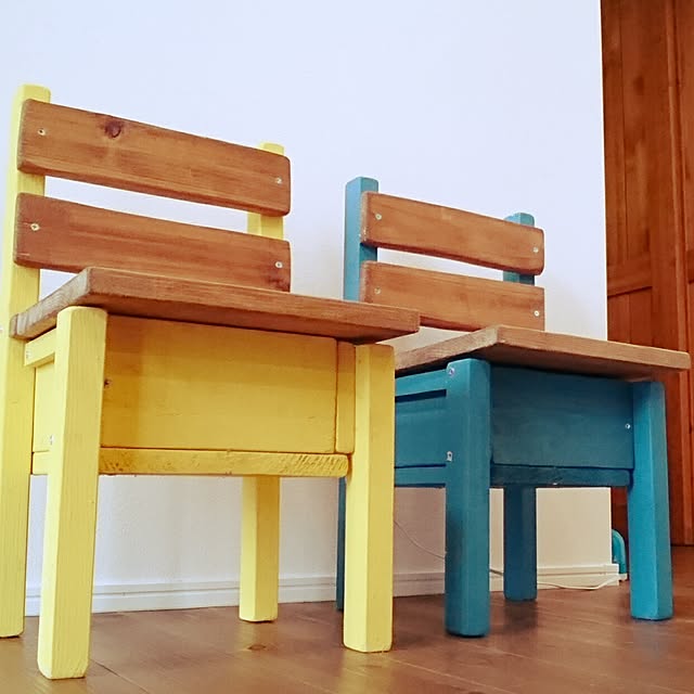 くまさんの椅子は義母から、娘が玄関で靴を履き替えやすい用にって頂いたものですが、かわいいのてこちらに置きました( ˊᵕˋ* )ともだちやいとこがきたとき便利♩
