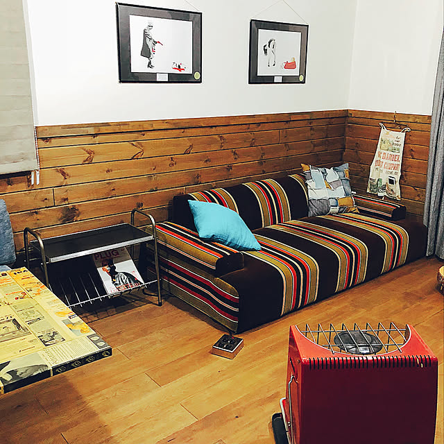 ソファの横にヴィンテージエプロン❤ とりあえず。リモコン入れに...🤔