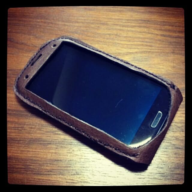 革のハギレを購入して初めて作ったiphoneケース。縫い目ガタガタですが、これから男前な小物どんどん作っていくゾー!!