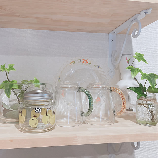 キッチン棚🍀 レトロな硝子食器を少しづつ集めています☺️