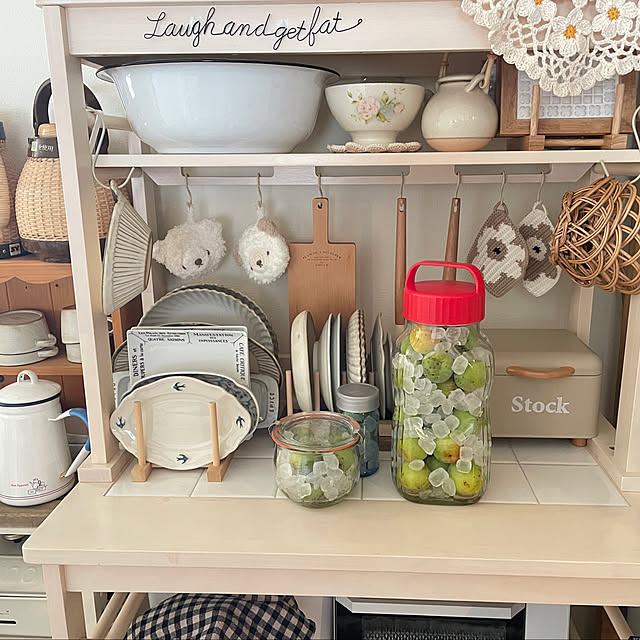 梅仕事一段落。 梅シロップ、梅ジャム、梅干し作りました。 梅干しはしばらく漬け込み、梅雨明けに干します。