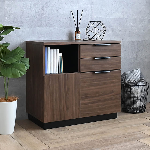 ソファサイドにあるテーブルは、フタを開けるとミラー付。