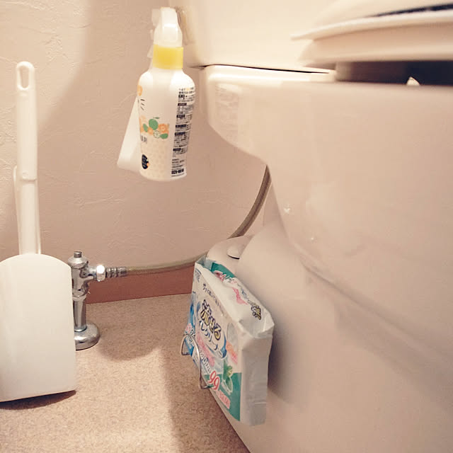 トイレの床に置いていた掃除に使うスプレーや、ウェットシートを、 セリアの〖ステンレスバススポンジホルダー〗と・ 〖貼って剥がせるフィルムフック ダブルタイプ〗を購入して、トイレの側面に付けて、吊り下げて浮かせる収納にしました。 トイレブラシは置いたままですが(^^; …でも、直置きしていないので、これで掃除も楽になりますし、何より、 トイレに入った時に、あまり視界に入らないからゴチャゴチャしてなくて凄く良いと思いました。(* ´ ▽ ` *)ノ