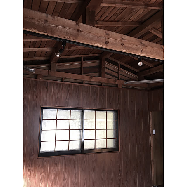 セカンドハウス 2階の壁のペイント、進行中です。 こちら側の窓口は元和室で、ガラス障子でした。写真は、ガラス障子を一枚ずつ試しに戻して付けてみました。 結構和な感じなのでどんな風にしようか考え中です。