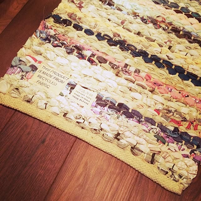 この上で作業すれば、子どもたちの食べこぼしの被害にあうことも無いし、麻紐の細かいケバケバも、最後にマットをパンパンすれば良いかな♡強いて言えば、炊飯器用にサイズ調整したものだから正方形なんだけど、作業マットとして使うなら横幅をもう一列つけて長方形の方が使いやすかったかな〜〜(ㆀ˘・з・˘)