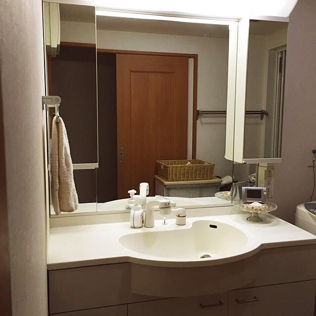 わが家でも比較的マシな洗面所兼脱衣所。 洗濯機は故障したので、新しいものが届くのまち。