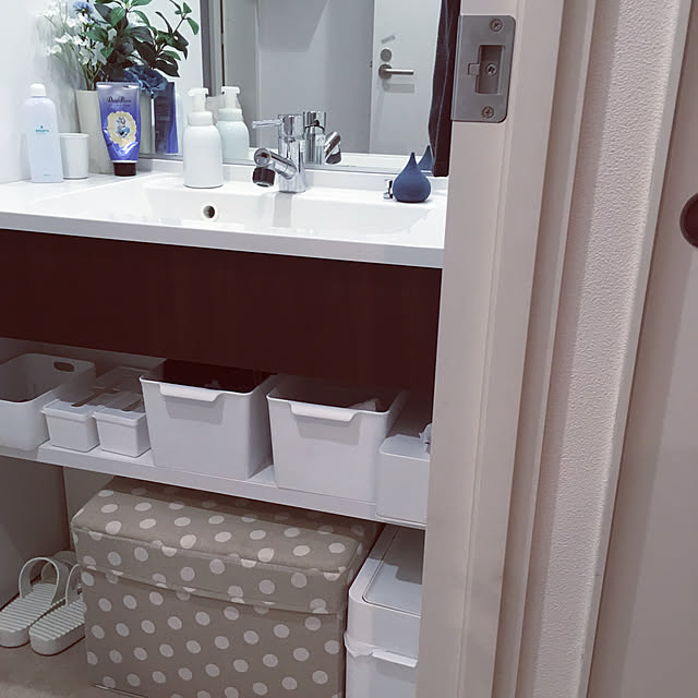 テーマは 「ちょい足しで便利!」 DAISOで見つけたこのキャスターすごくいい😍 洗面台下の収納のカゴにつけました♪ ほんのちょっとのことなんですけど出し入れがスムーズになりました😆