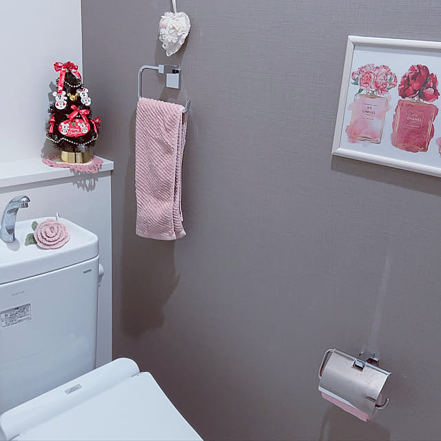 トイレ🚽は、ピンクでまとめてます💕小さなツリー🌲🎄でクリスマス🎅気分
