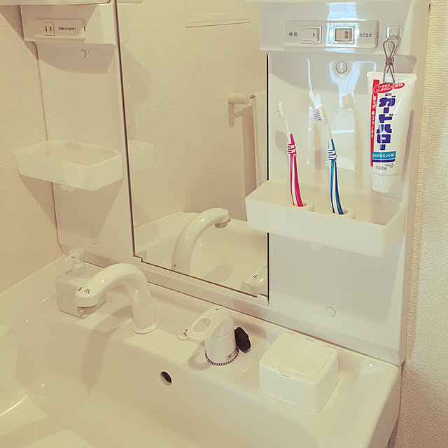 見苦しい写真で、すみません。 洗面所のゴミ箱 ゴミ箱の後ろに百均で購入したテープ付きマグネットを貼って、洗濯機に付けました。宙に浮かせることができて、掃除が楽になりました。見苦しいですが、少量のマグネットだとずり落ちてきそうだったので、大量のマグネットを付けました。ゴミ箱も百均です。マグネット付きのゴミ箱でぐぐると、1600円ぐらいして、種類もあまりなかったので、自作しました。 洗面所のティッシュ キャンドゥで購入したティッシュケースに入れて、山崎実業のマグネットで挟み、洗濯機に付けました。こちらも、百均のテープ付きマグネットで良かったな^^;
